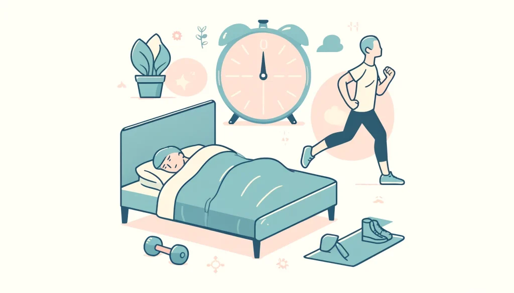 運動を行う時間帯も睡眠の質に影響を与えます。一般的に、運動は就寝の3時間前までに終了させることが推奨されています。これは、運動によって体温が上昇するため、就寝直前に運動を行うと体温が下がりにくくなり、入眠が妨げられるためです。