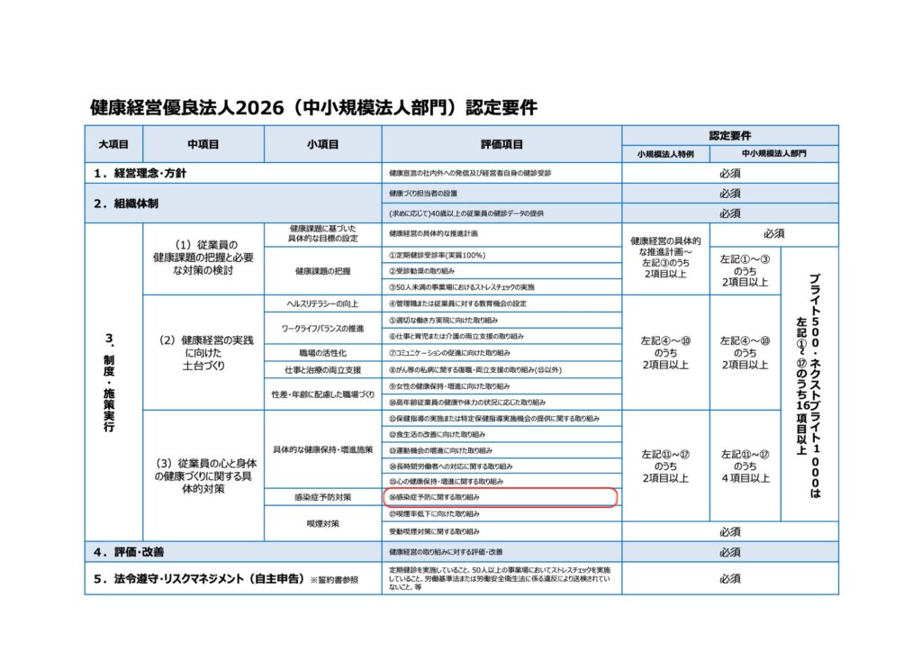 (参考:健康経営優良法人2026(中小規模法人部門)認定要件より)