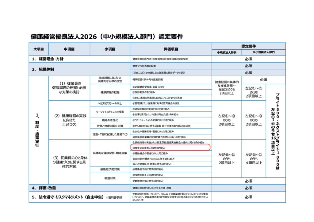 (参考:健康経営優良法人2026(中小規模法人部門)認定要件より)