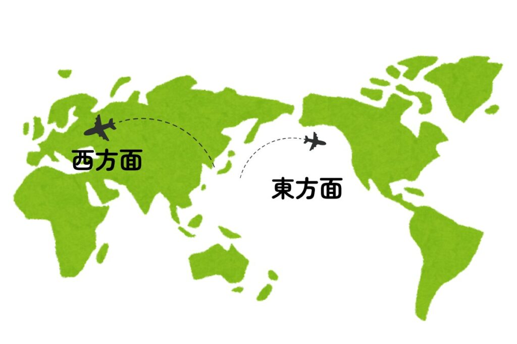 ヨーロッパなど西方面へ向かう場合1日の周期は長くなる